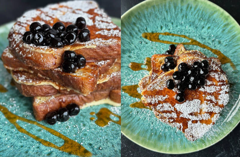If this French toast showed up on a café menu, it would be the dish everyone points at and says, “We have to try that.” Thick-cut toast, soaked in a vanilla custard, hits the griddle until golden, then gets finished with a drizzle of syrup and a crown of chewy tapioca boba. It’s brunch comfort with a playful twist—and it looks as good on the table as it sounds on the menu.