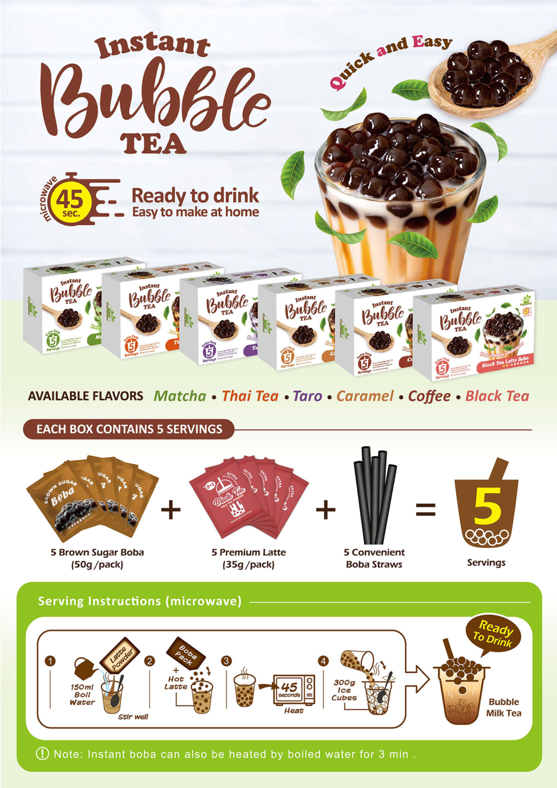 ⏱️ INSTANT – Microwave your premium tea with boba for only 45 seconds to enjoy!
